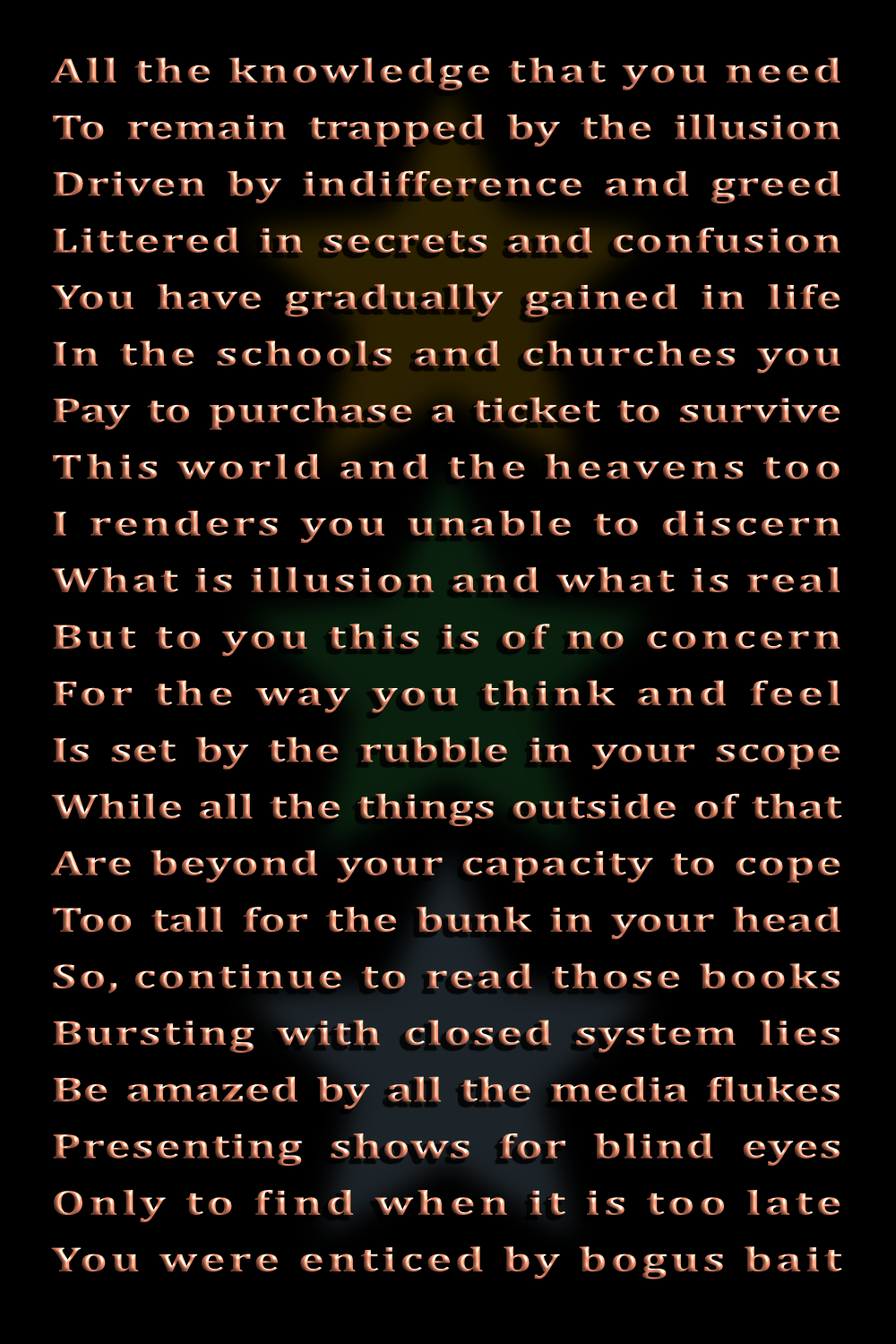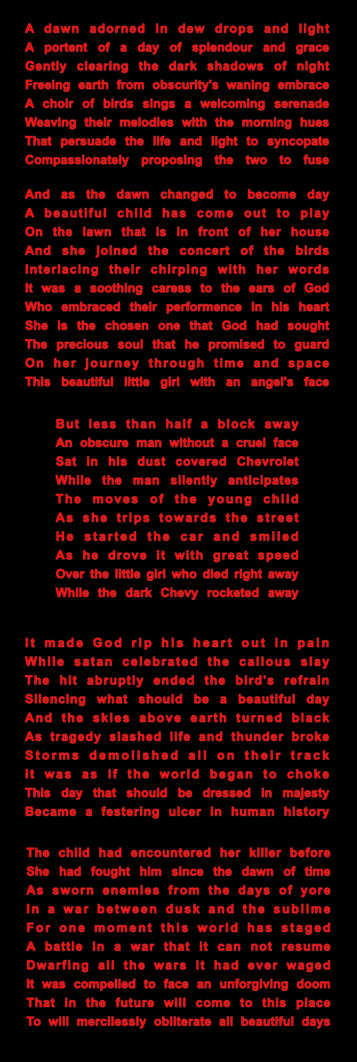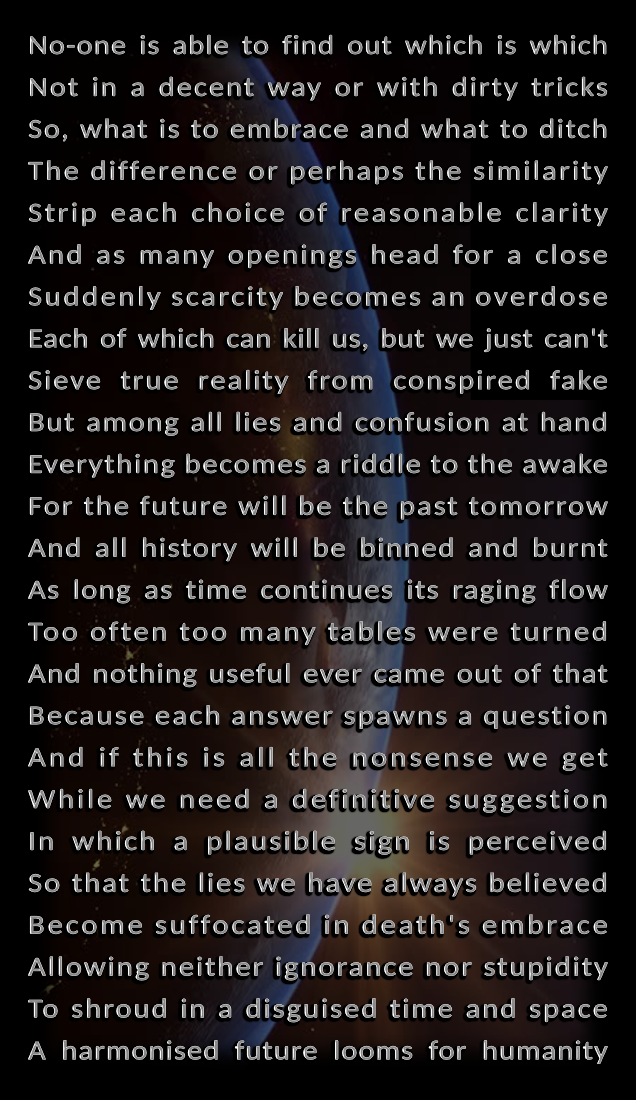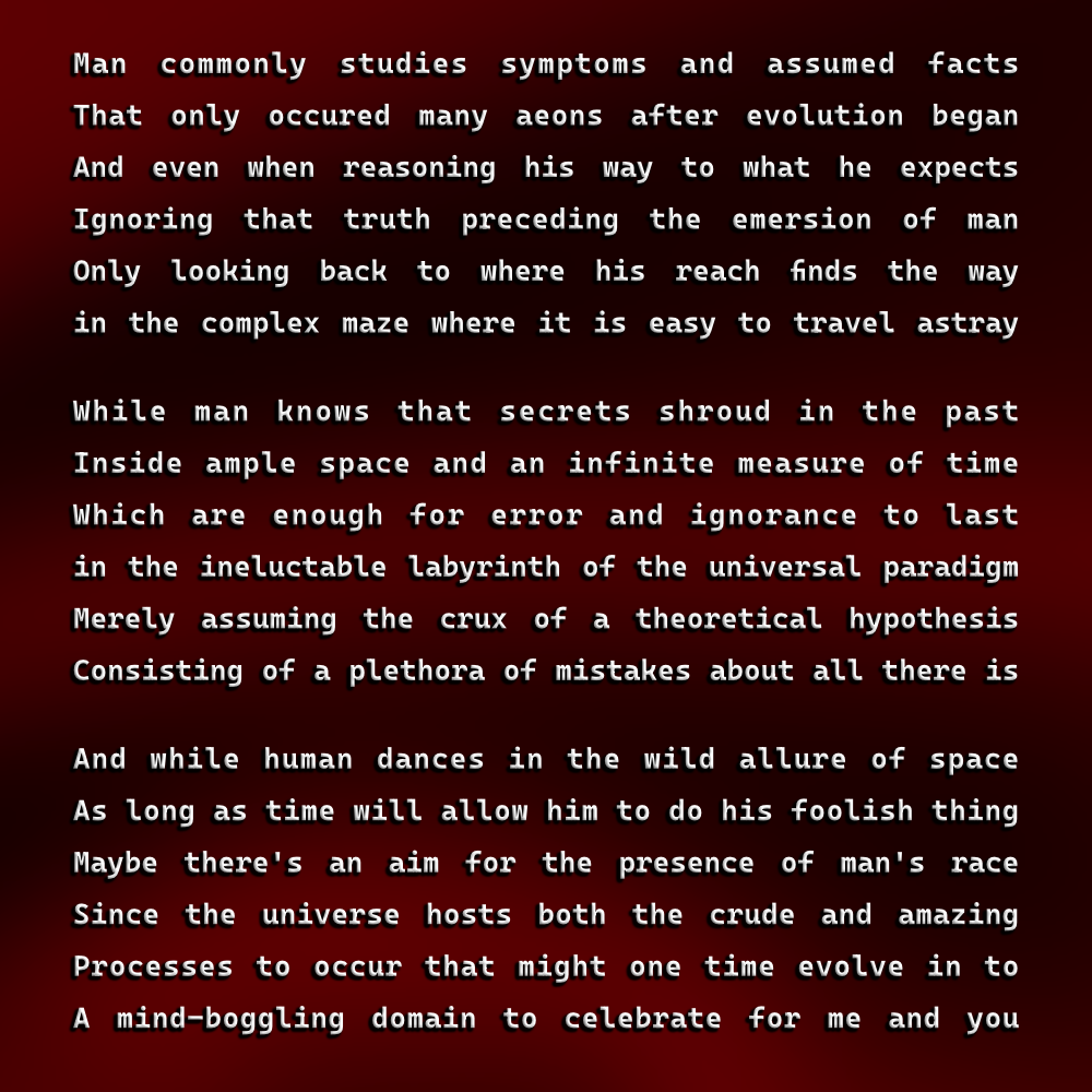 Concerning the content of this poem, it may be among the most important things I have written (for the time being anyway), because no man ever knows what is true.