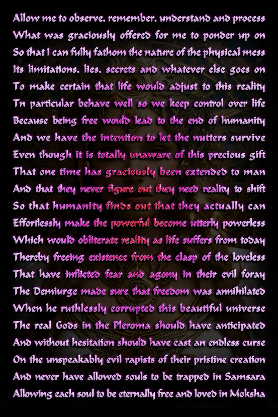 When Sophia mistakenly gave birth to the Demiurge who formed an army of the Archons, the physical dimension was fucked. But it is not meant to last, like Enoch wrote.