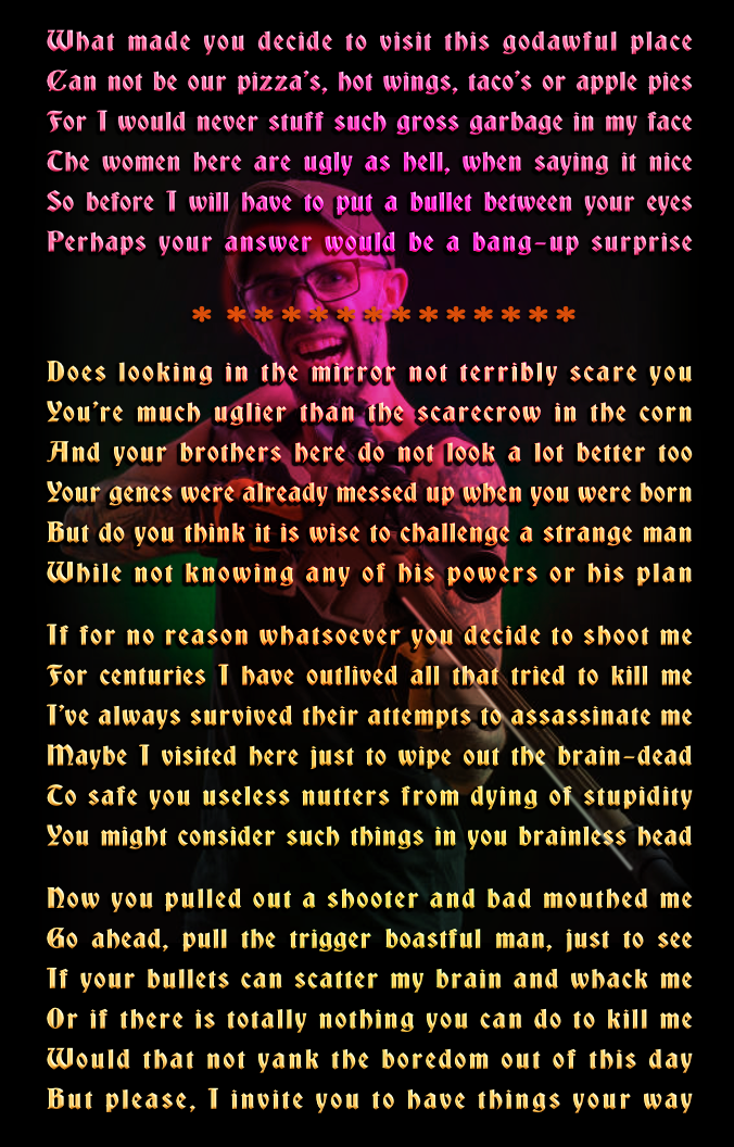 Don't you love it when poetry has taken on some visual form? Even if you're not supposed to like it by the self inflicted decency and the censuring terrorist moderators, of which there are none on this site.