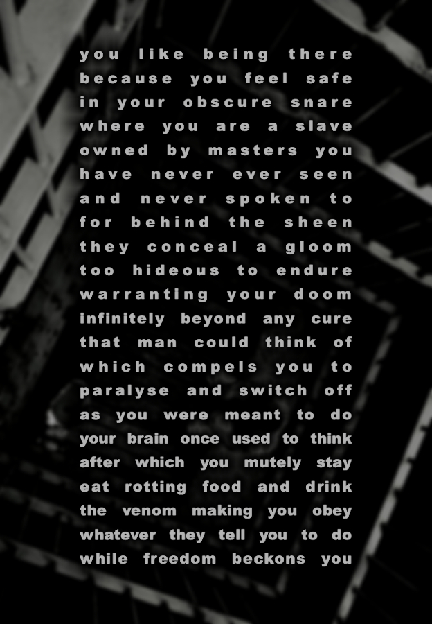 The human language, as it is expressed by the late, great Terrence McKenna, is a limited and merely a paradoxical means to communicate. The most feared and widespread code that scares the wits out of the living, is an algorithm that is called fear.