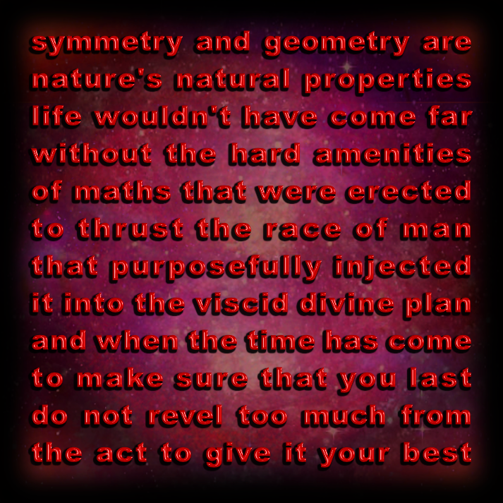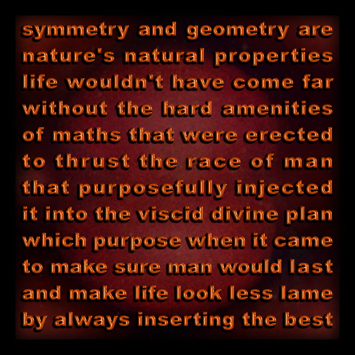 Symmetry and geometry are embedded in life. They always have permeated and fecundated it. So embrace this fertile relation and allow yourself to enjoy the ride.