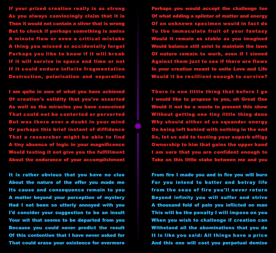 Hubris of a failed mind of a false deity provoking a real God from the Pleroma.