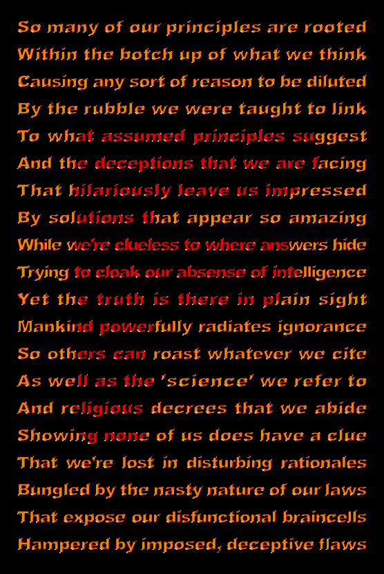 For centuries mankind has been trained, deceived and poisoned to senselessly obey dogmas and laws, regardless of what their nature is.