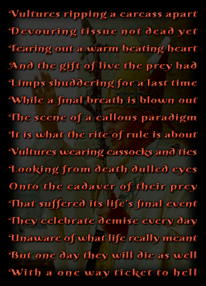 Countless confessions of victims that have been abused by Roman Catholic priests and even mass graves with murdered victims have been found after being sexually abused and all the Vatican does is pay hush money to the families of the victims. It is painful beyond the capacity of words to express.