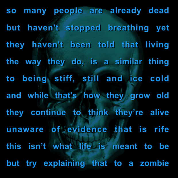 There are countless ways to live life. An unfortunately common preference is to pretend to be alive, while not doing a lot more than a corpse. But trying to make them consider to be really alive, is quite similar to talking to a stiff.