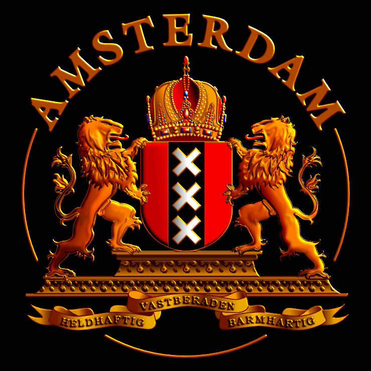 100% vector crest of Amsterdam created in Affinity Designer as a T-shirt design. A more detailed original graphic image of this crest is nowhere to be found but here on this website. The lions are a copy of the Medici bank crest, that left Venice after their competitors from Genoa got a boost from the gold that Columbus brought from South-America. The Venetian bankers moved their business to Bruges, Antwerp and Amsterdam and later to London as well to change their strategy in order to remain competitive to their Genovese foes.