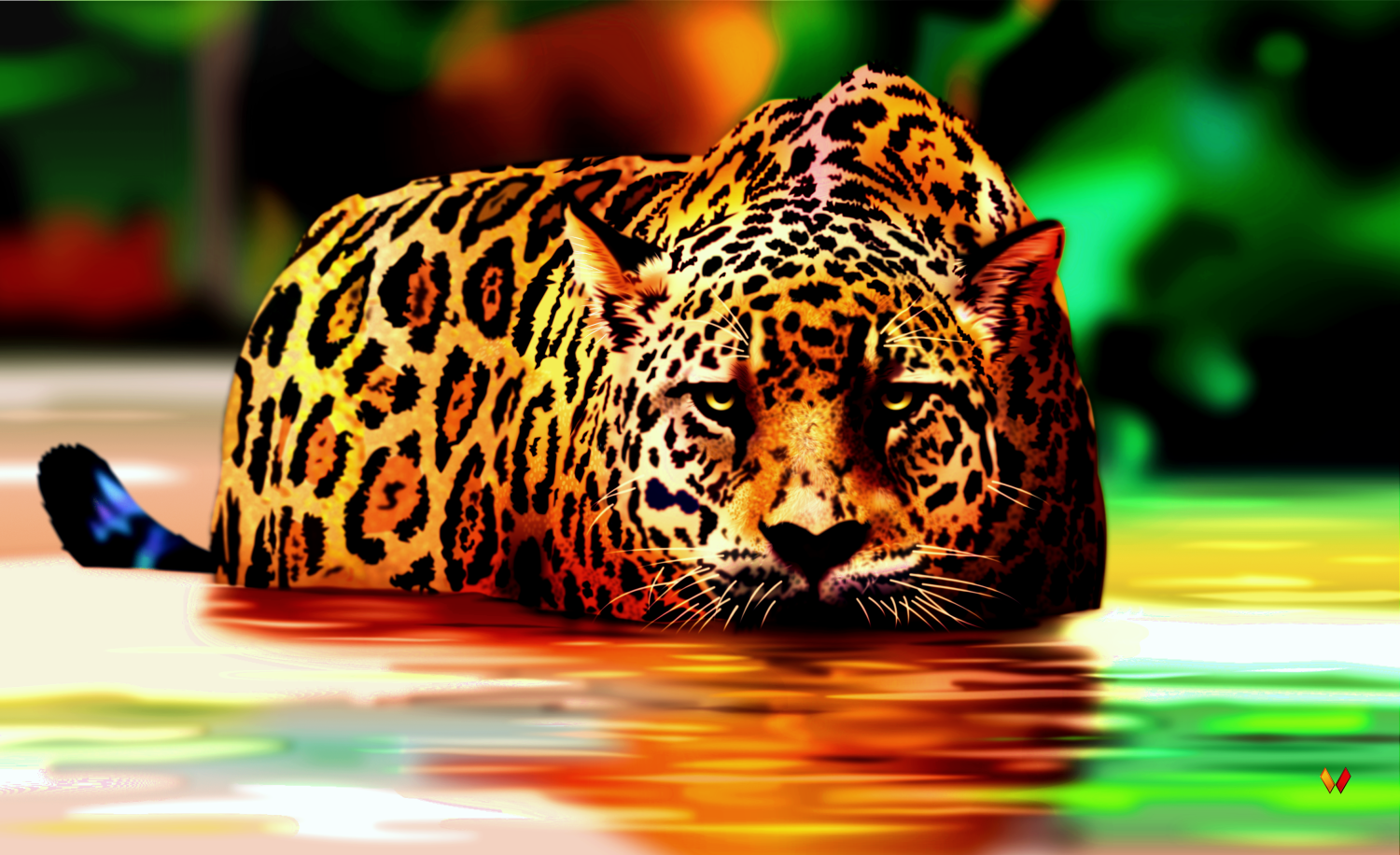 This vector painting is a work in progress as well; I have many of those.... (there is an other vector jaguar drawing at the bottom of this page). Drawn in Affinity Designer and VectorStyler. The image depicts a jaguar hunting in the Amazon river.